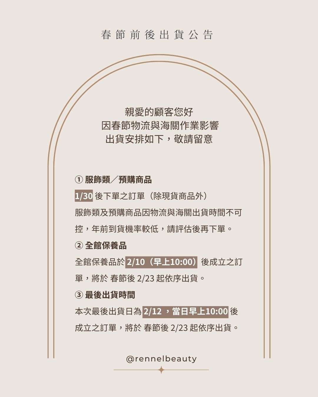 【年前送貨公告】除現貨商品外,於1/30後下單之服飾類及預購商品,物流海關出貨時間不可控,因此年前到貨機率較低,請評估後再下單 ❤ 謝謝 ❤