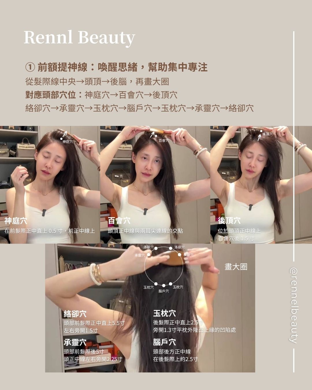 舒緩壓力:搭配木梳與穴位導引,釋放緊繃