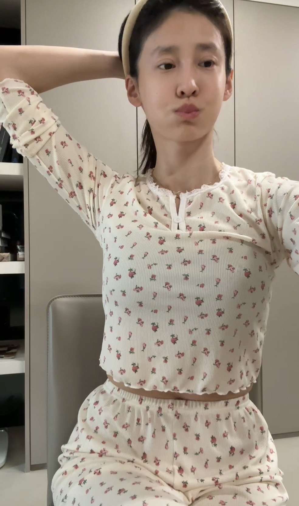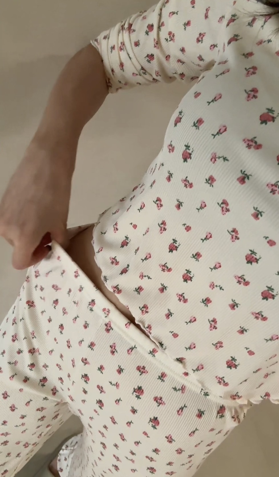 柔軟針織布 × 法式玫瑰小花 × 長袖長褲設計