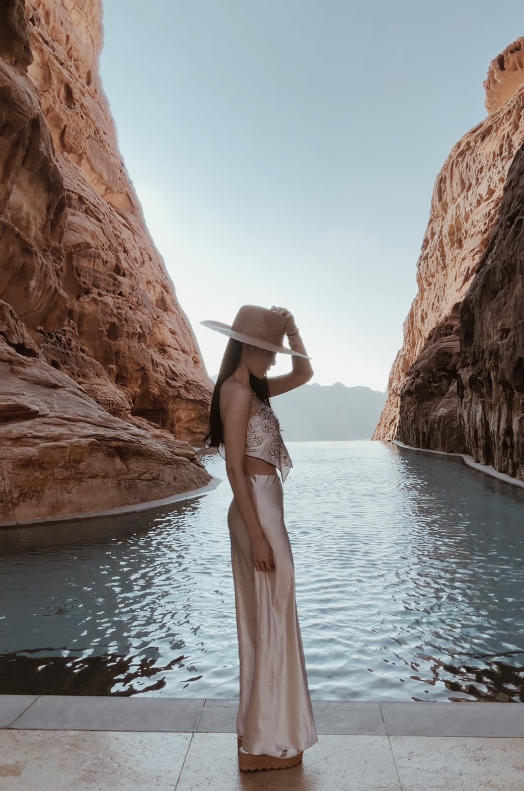 選用緞面材質,呈現細緻柔滑的垂墜線條
