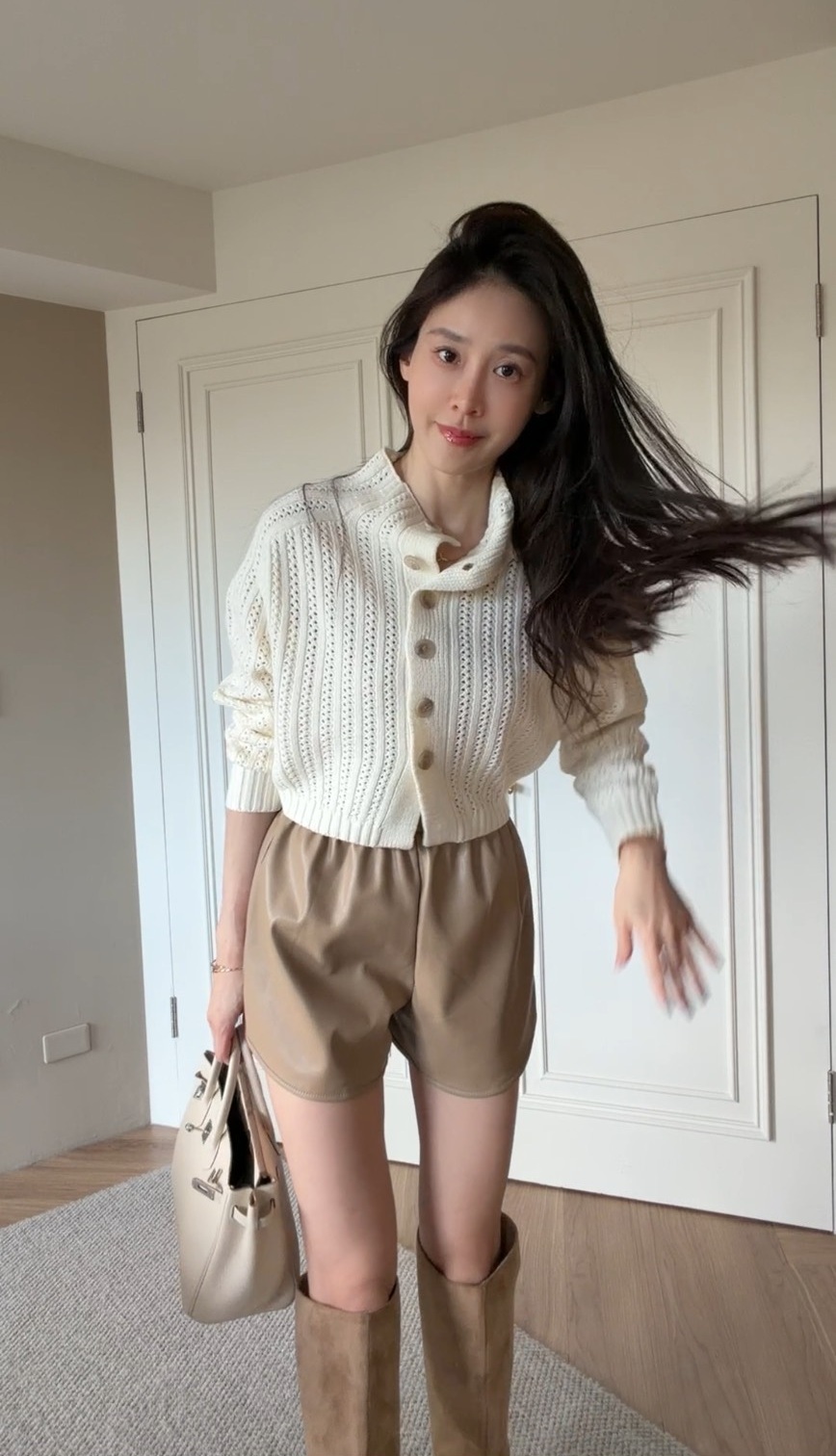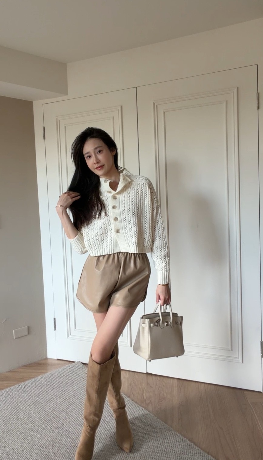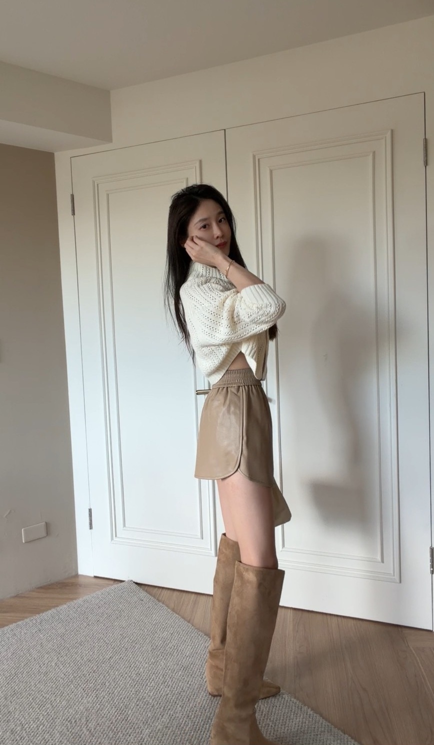 一件能在甜與酷之間自由切換的皮褲