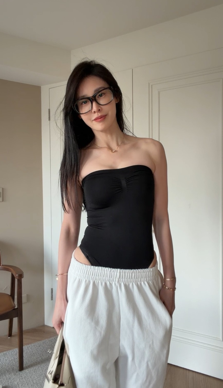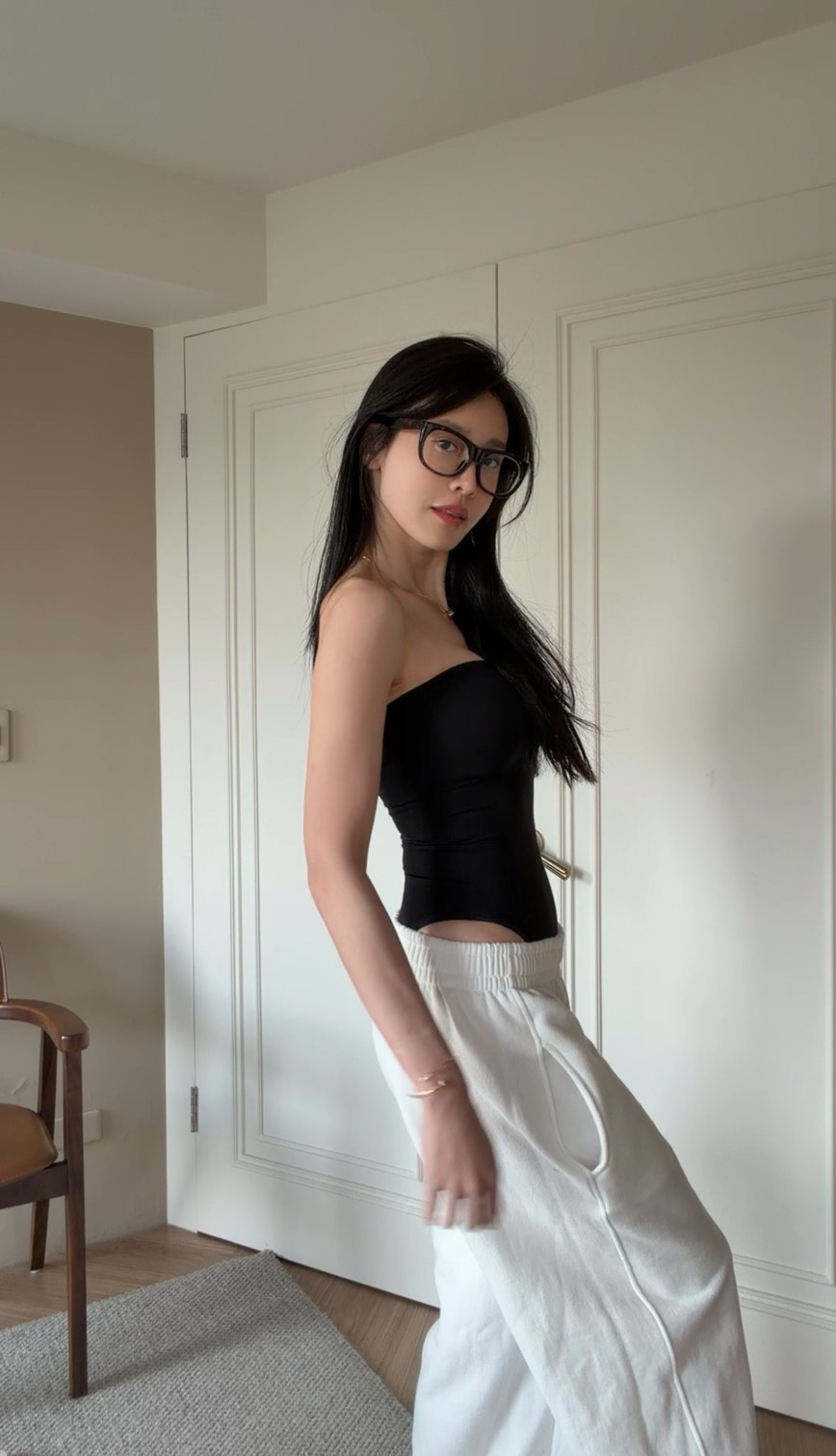 以高彈性親膚面料打造,貼合身形卻不緊繃