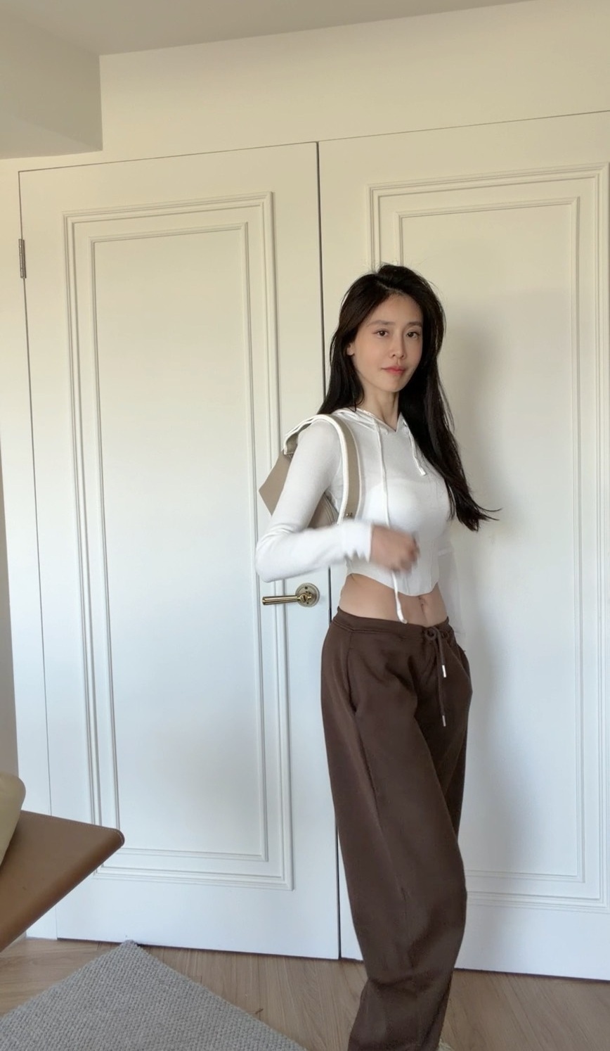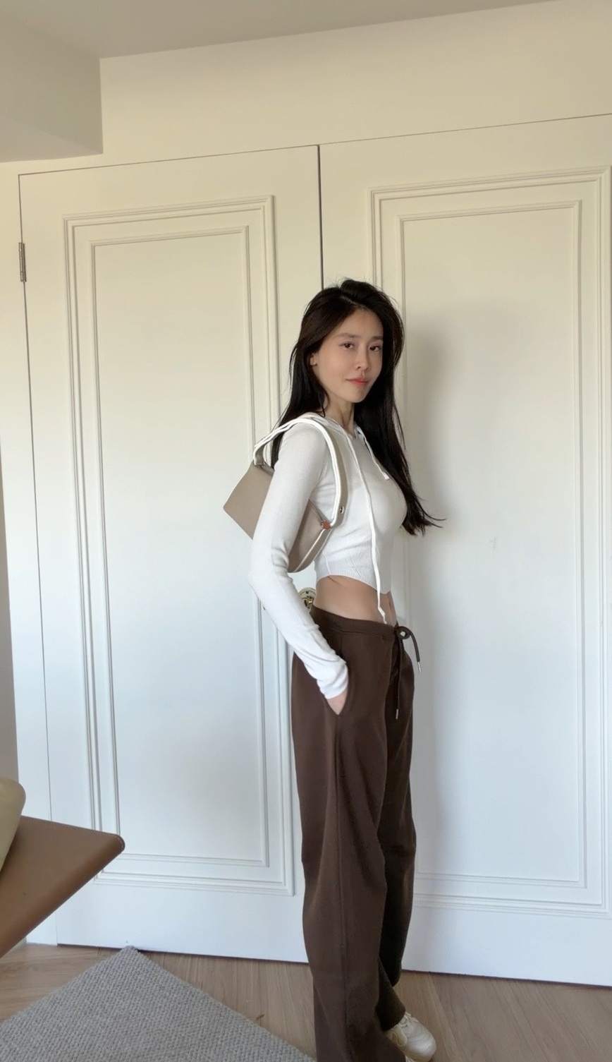 低腰設計搭配抽繩可調整腰圍,穿起來率性