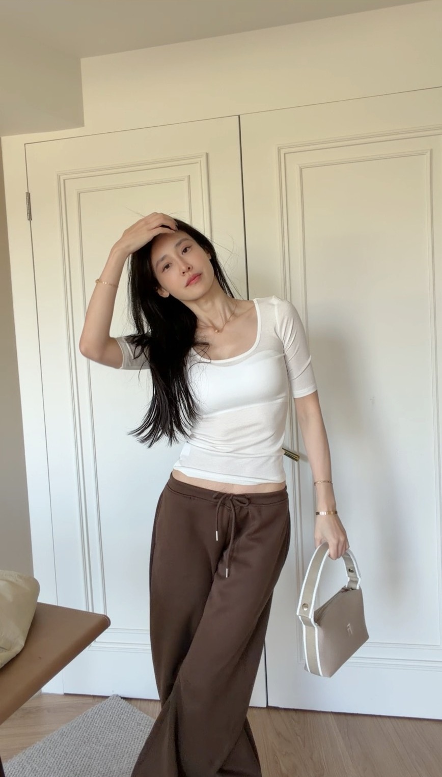 低圓領剪裁自然修飾鎖骨與肩頸線條