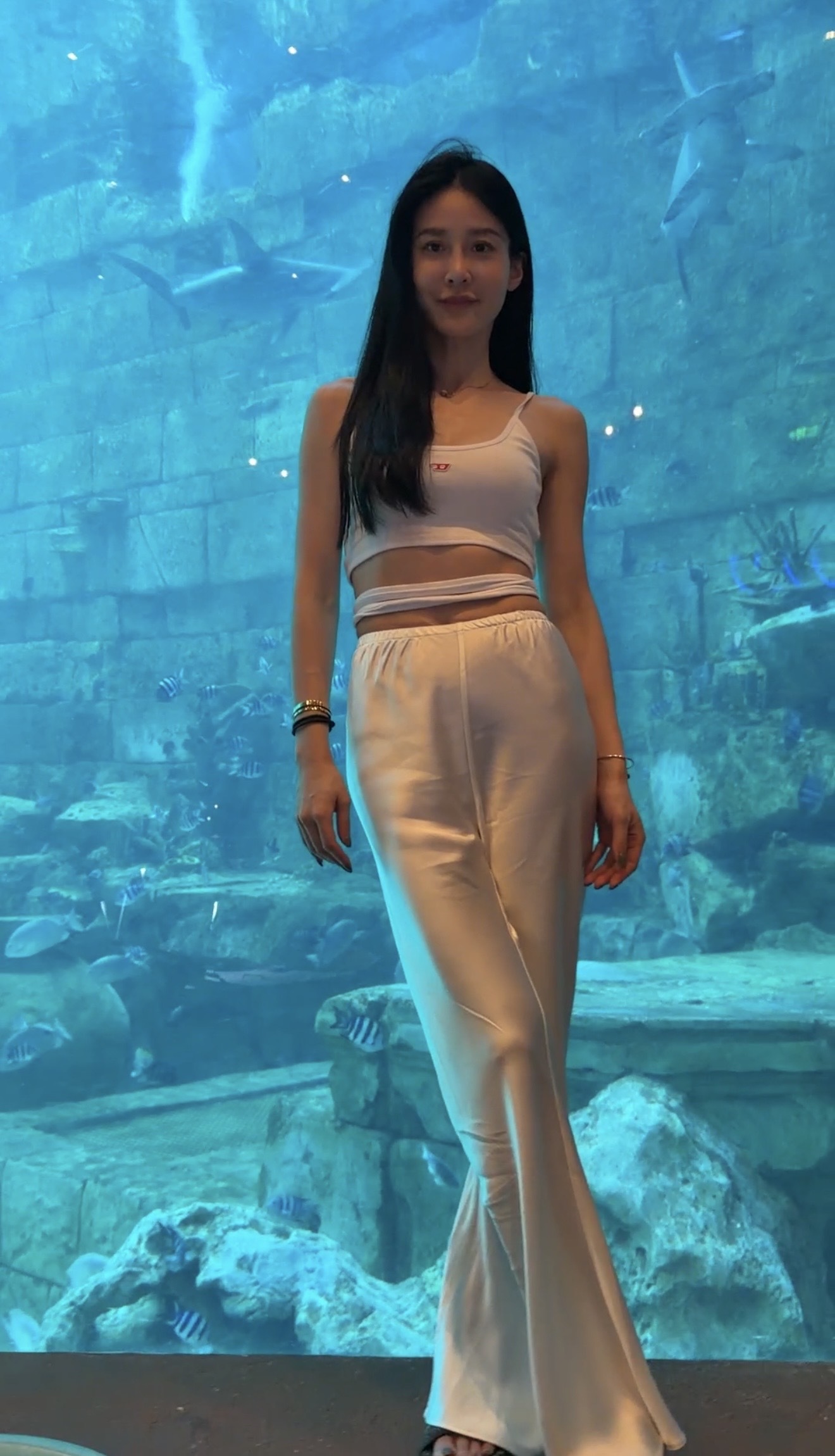 走路的時候布料自然擺動,整個垂墜感超漂亮,會有一種「腿長被拉開」的錯覺。