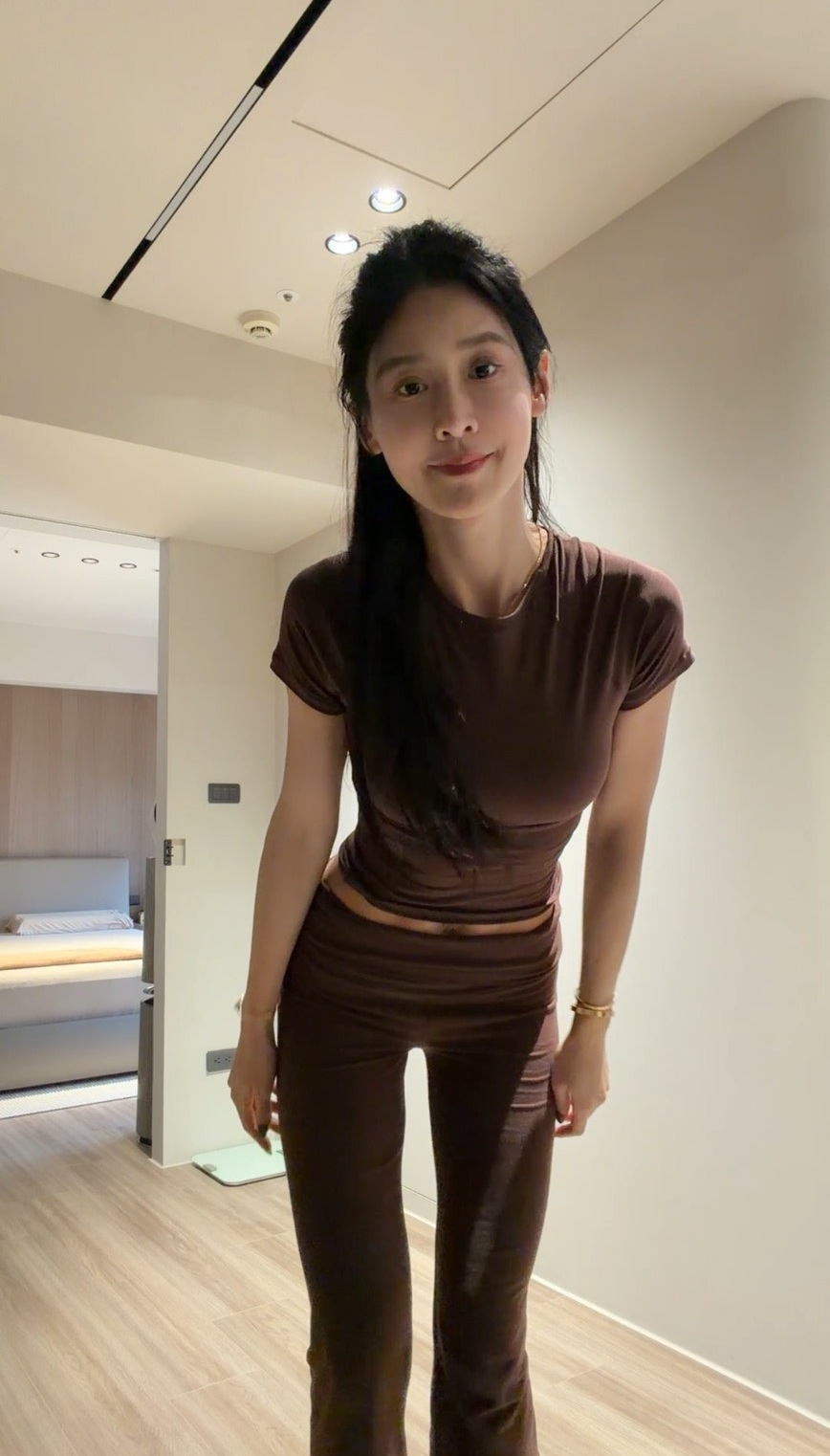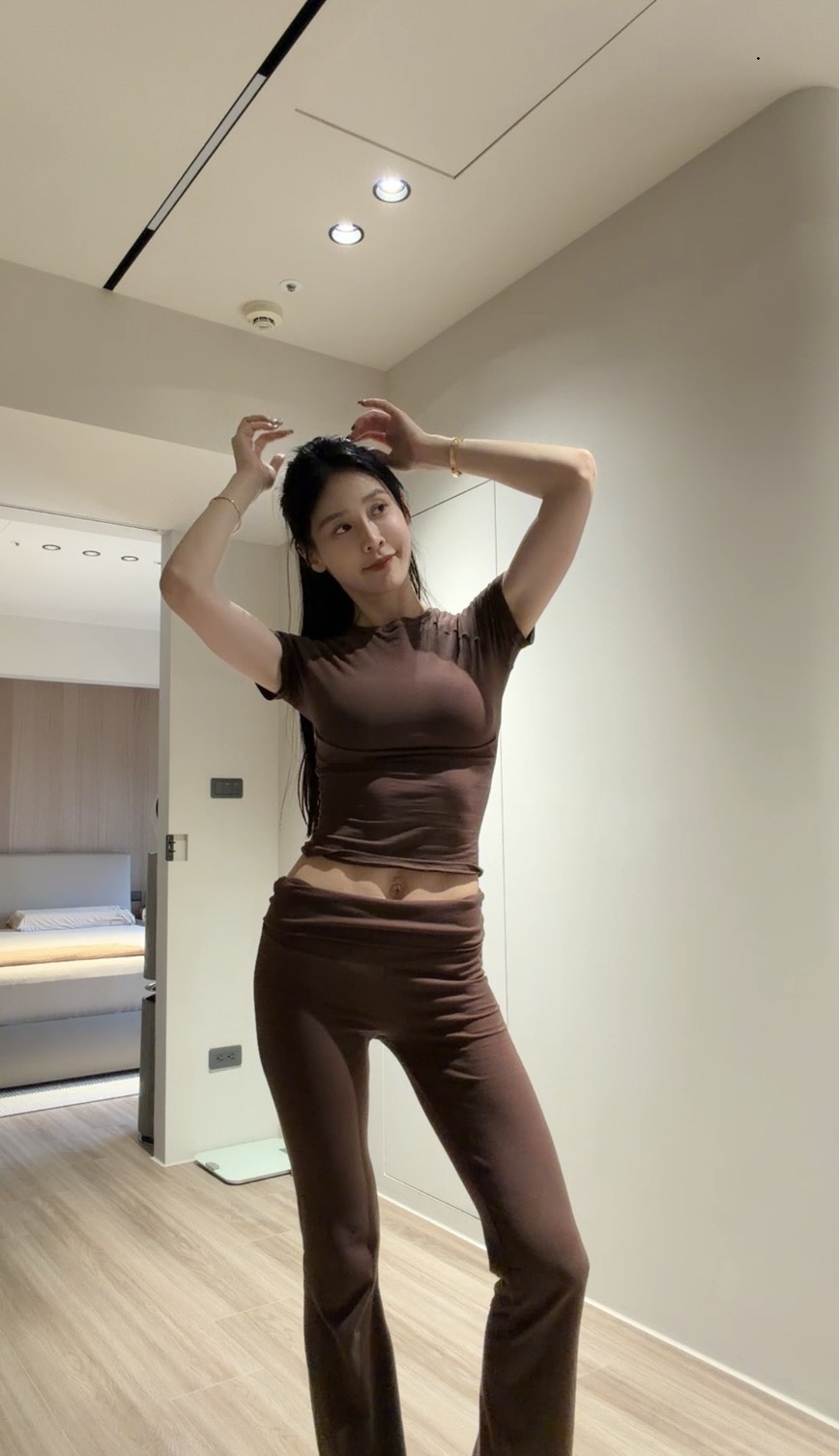 搭配修身短袖與喇叭褲設計
