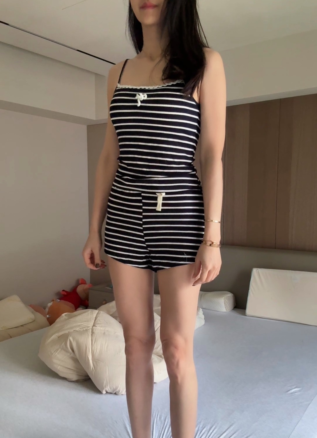 短褲綁帶裝飾增添造型感,展現慵懶甜美氣質