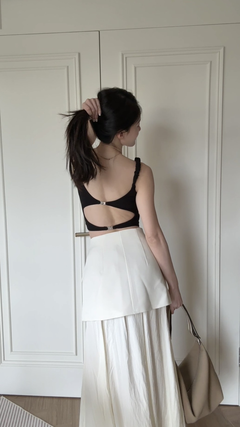 這款BraTop結合彈性羅紋面料與雙釦環露背設計