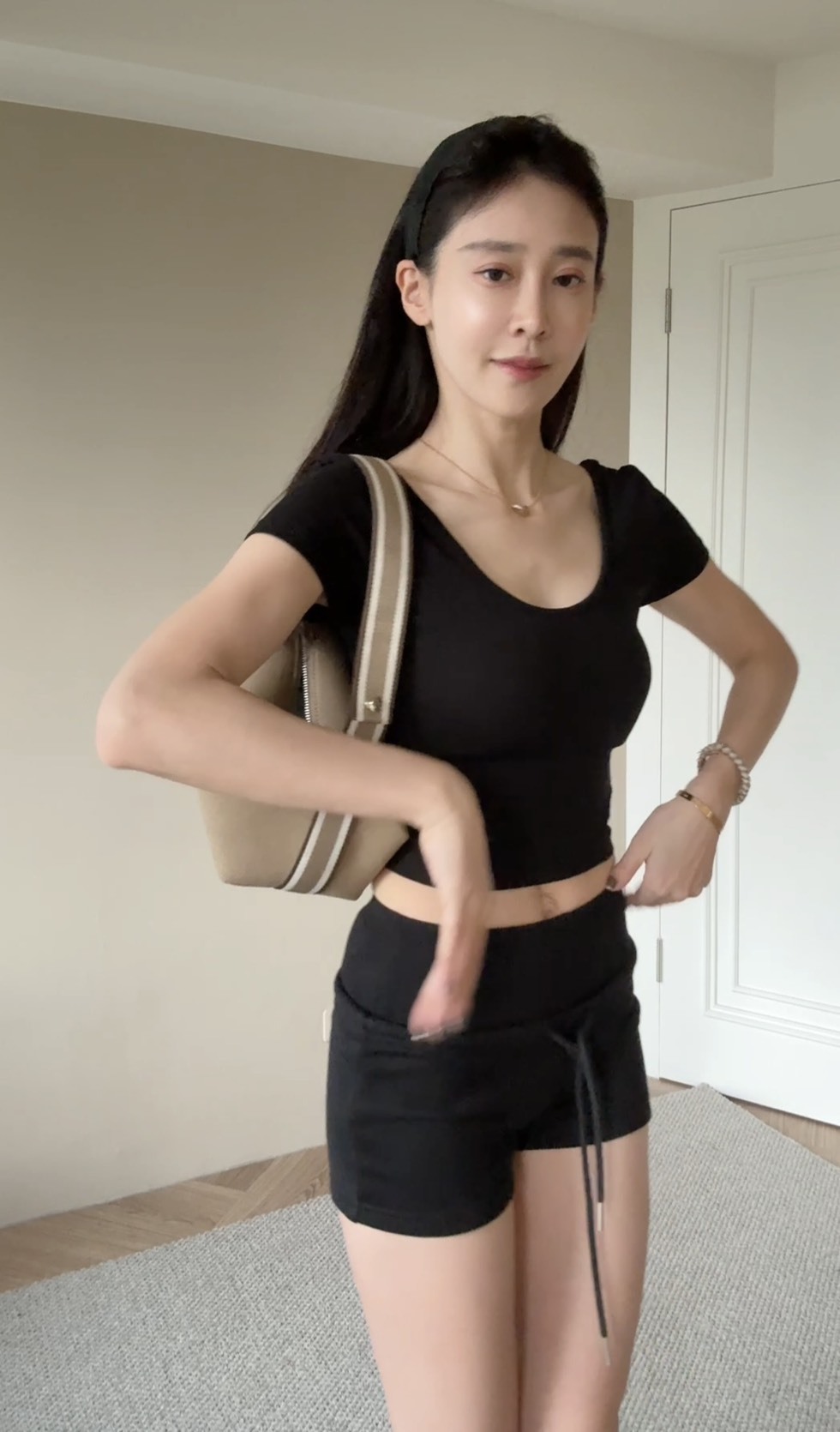 寬版彈力腰頭搭配抽繩綁帶設計,穩固又修飾腰線