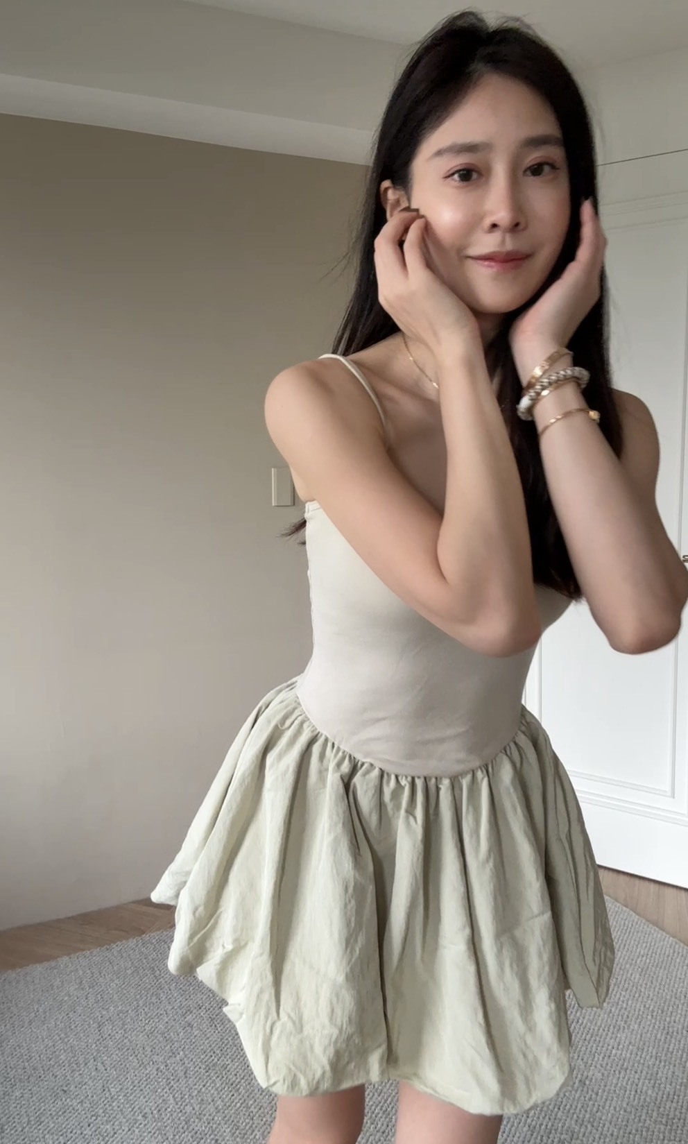 舒適親膚的螺紋上身與自然澎澎感的花苞裙襬