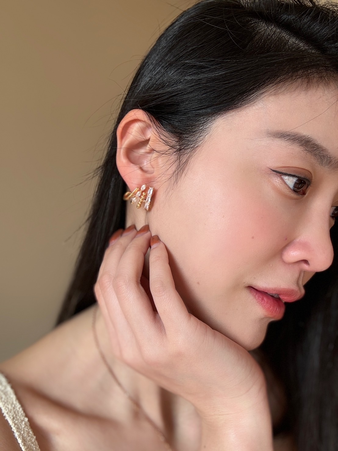 晶鑽點綴 | 搭配精緻閃耀的長方形切割水鑽與細緻金屬珠點,低調卻不失奢華。