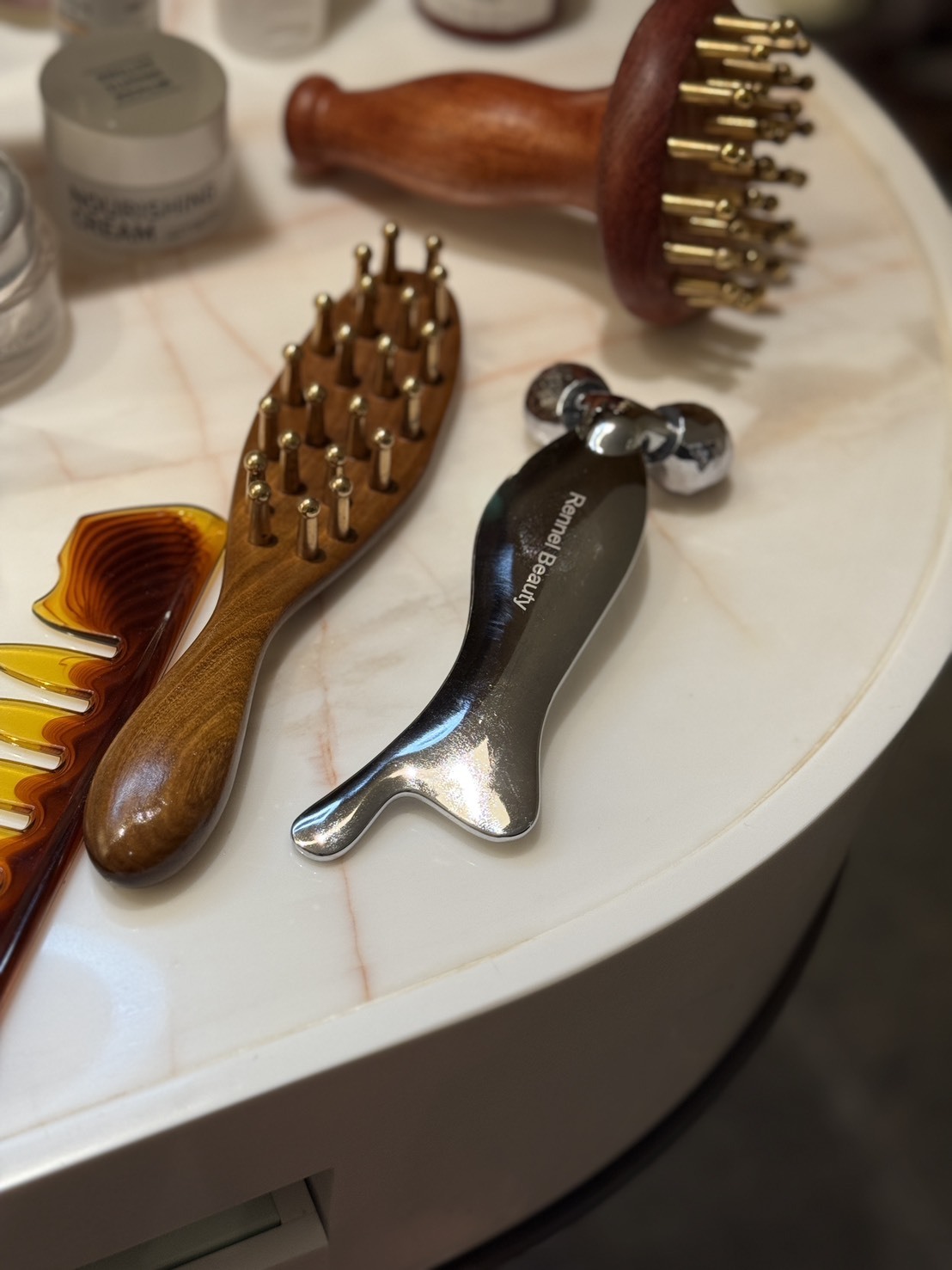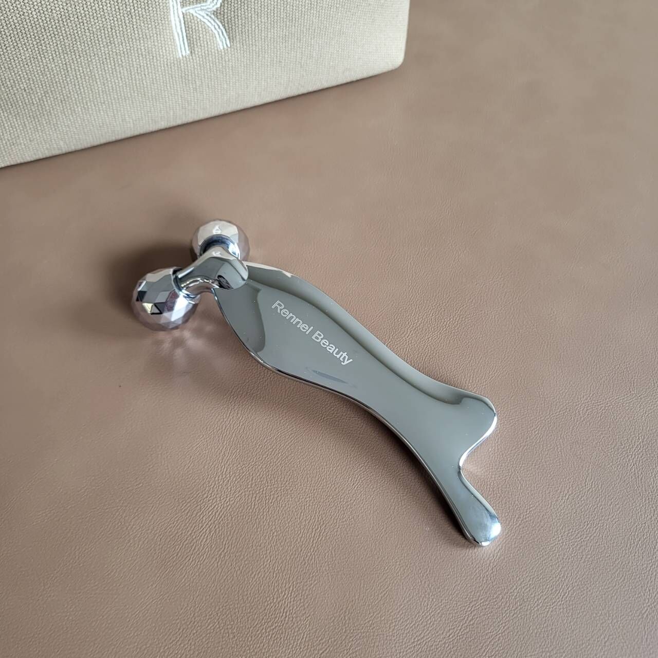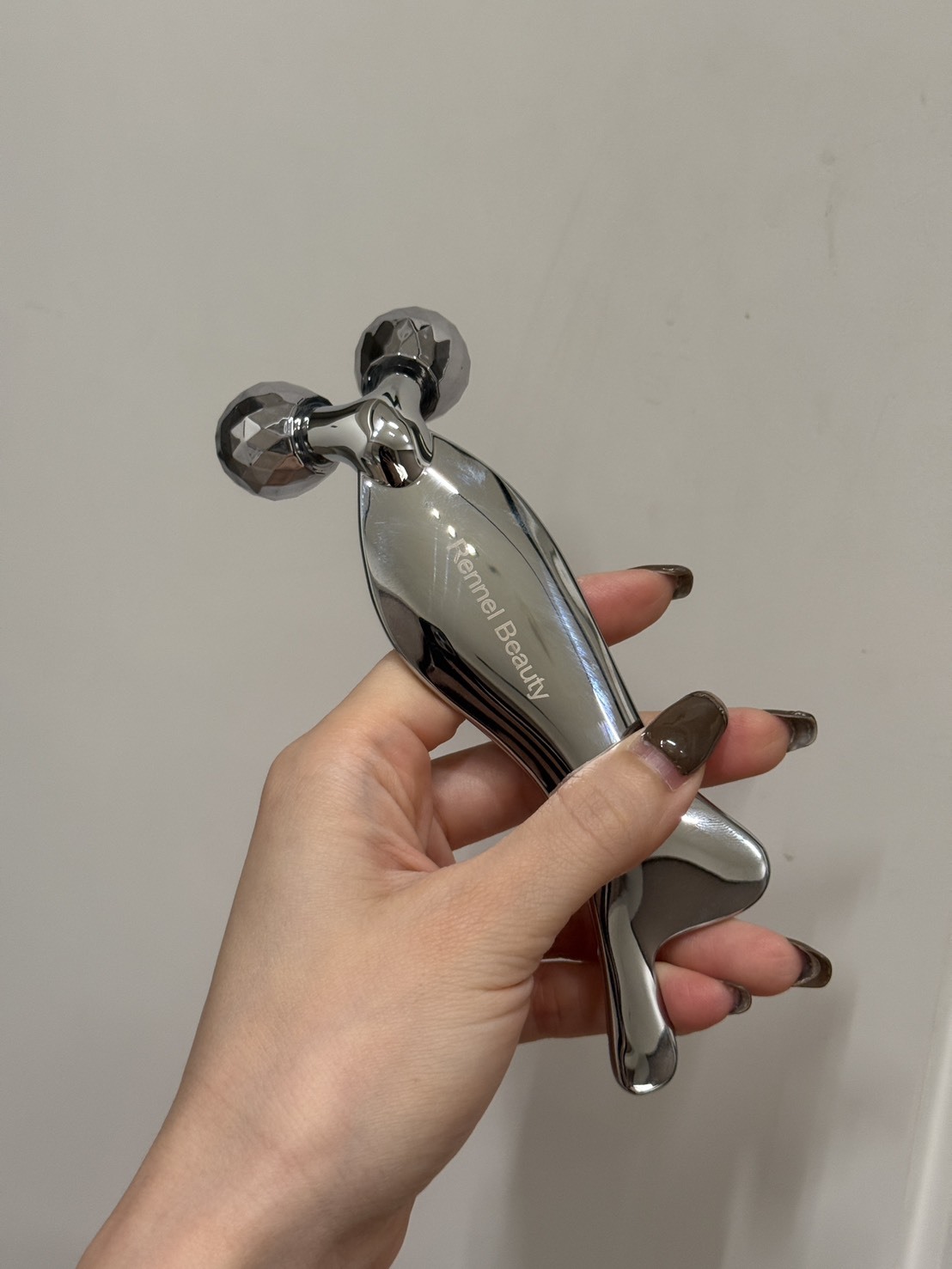 專為臉部輪廓設計的工具,結合滾輪與刮板結構
