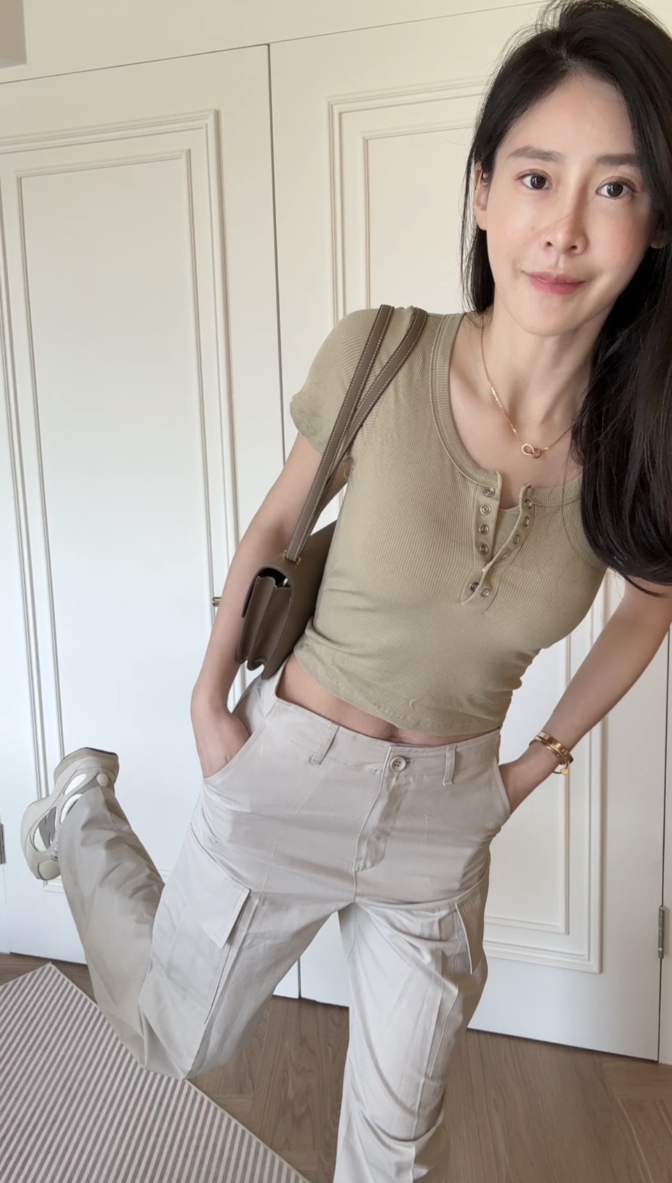 短版剪裁修飾比例,胸前排扣可自由調整開口深淺