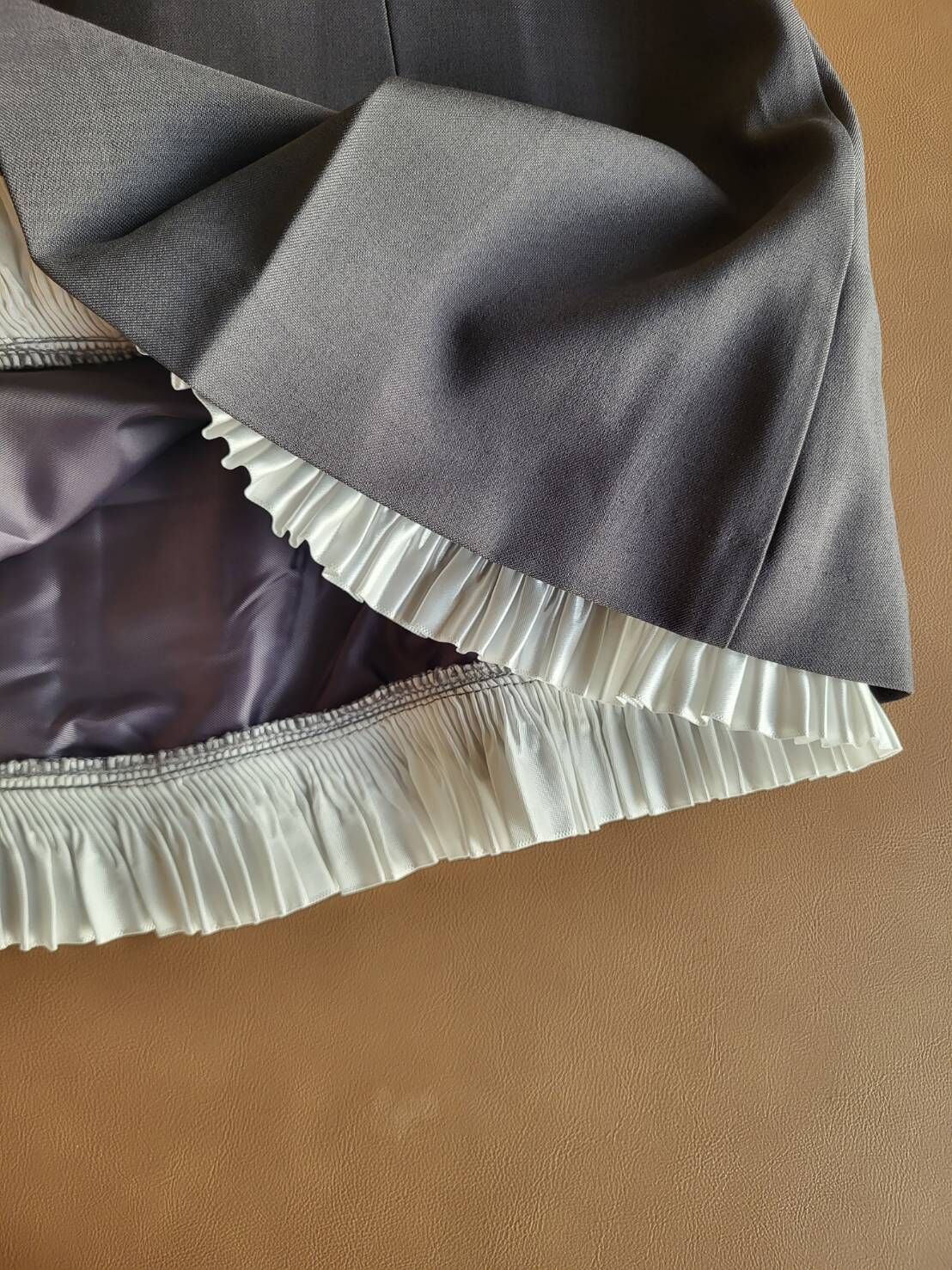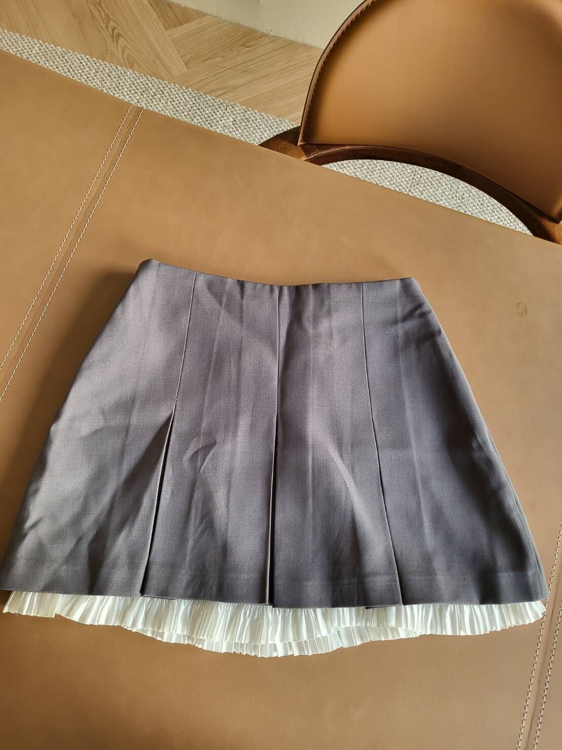 這款裙子融合 俐落學院風剪裁 與 拼接百褶細節