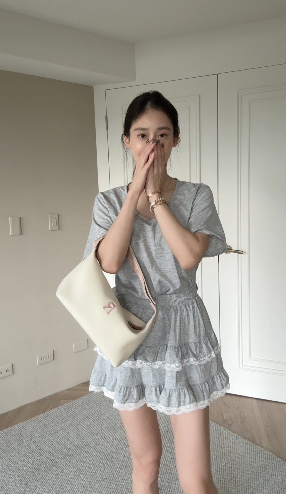 隨性中帶點甜美氣息的簡約T+蛋糕裙套裝