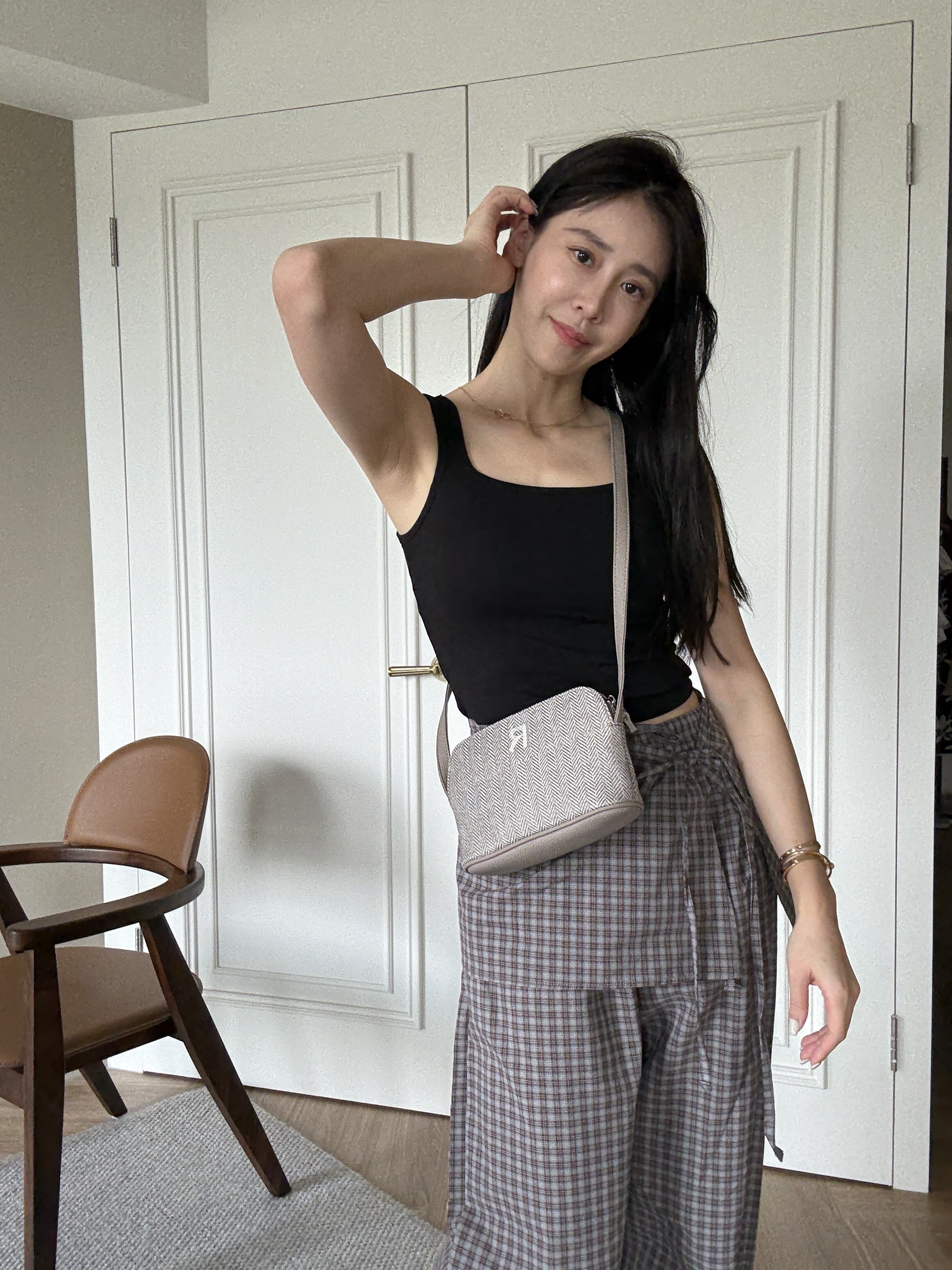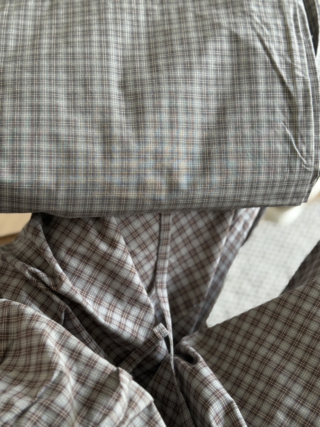 結合經典格紋元素與兩件式設計的韓系寬褲