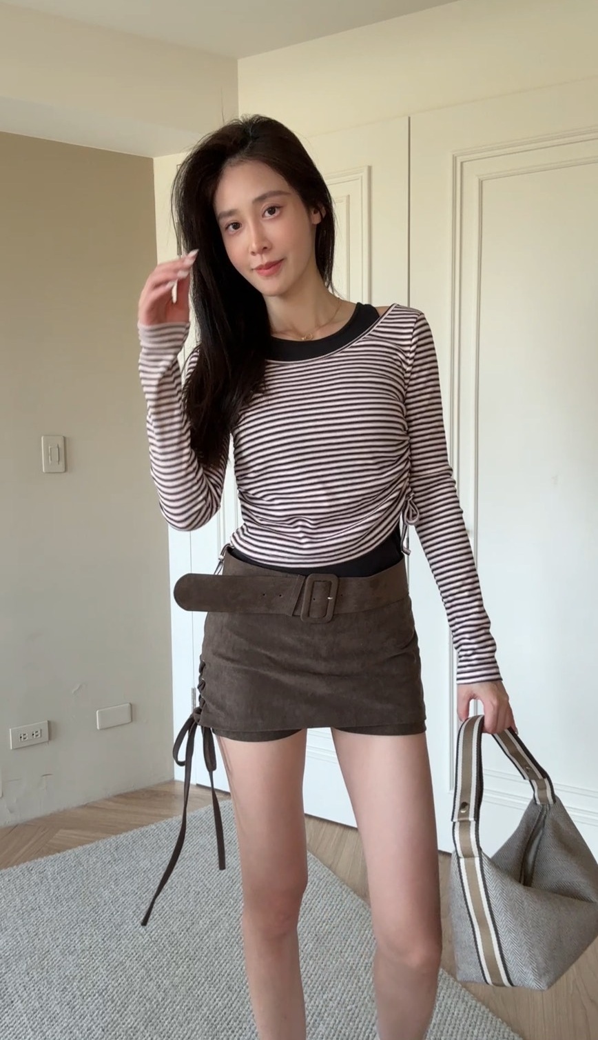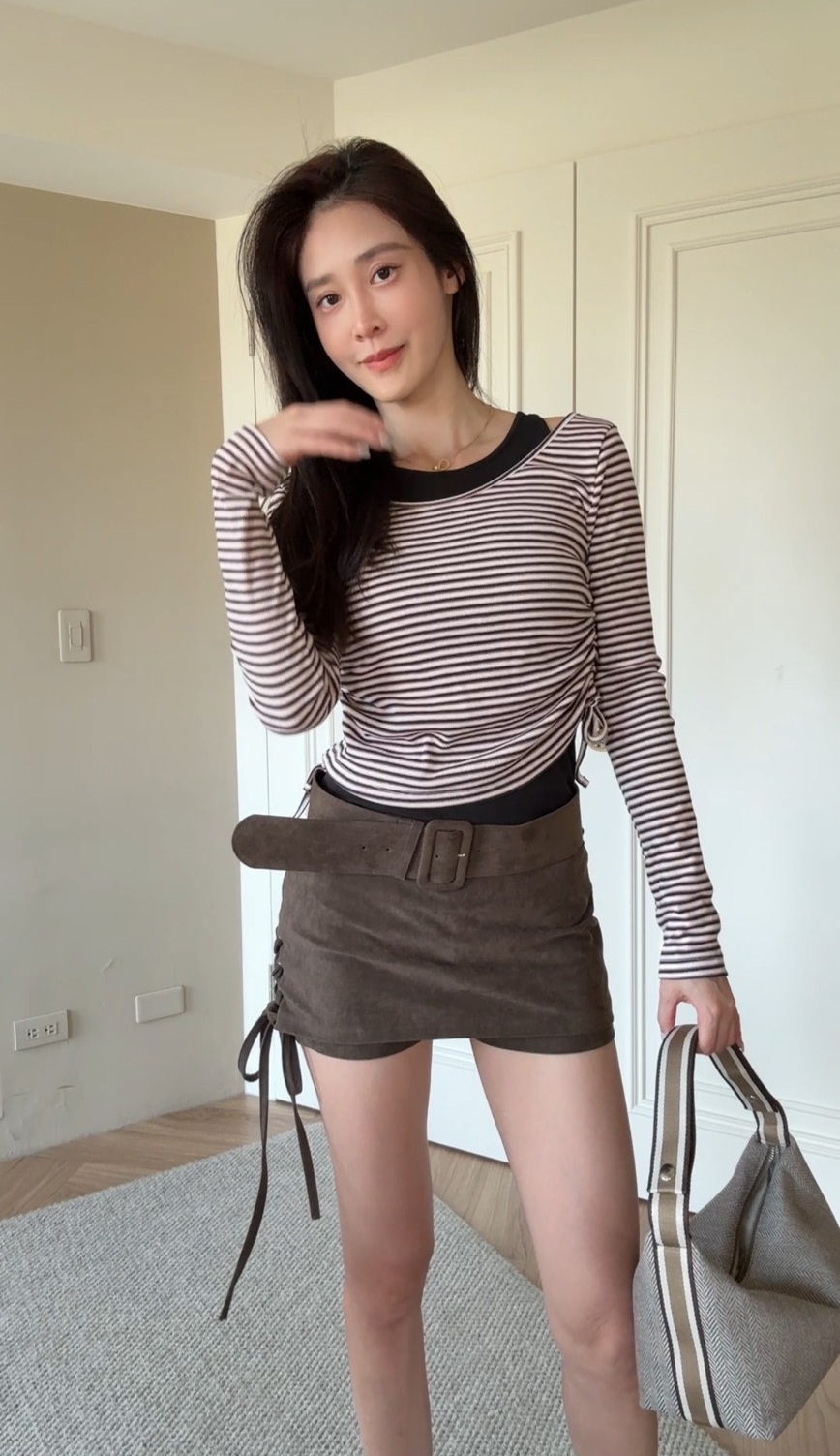 帶有小心機設計的韓系微露肩兩件式上衣