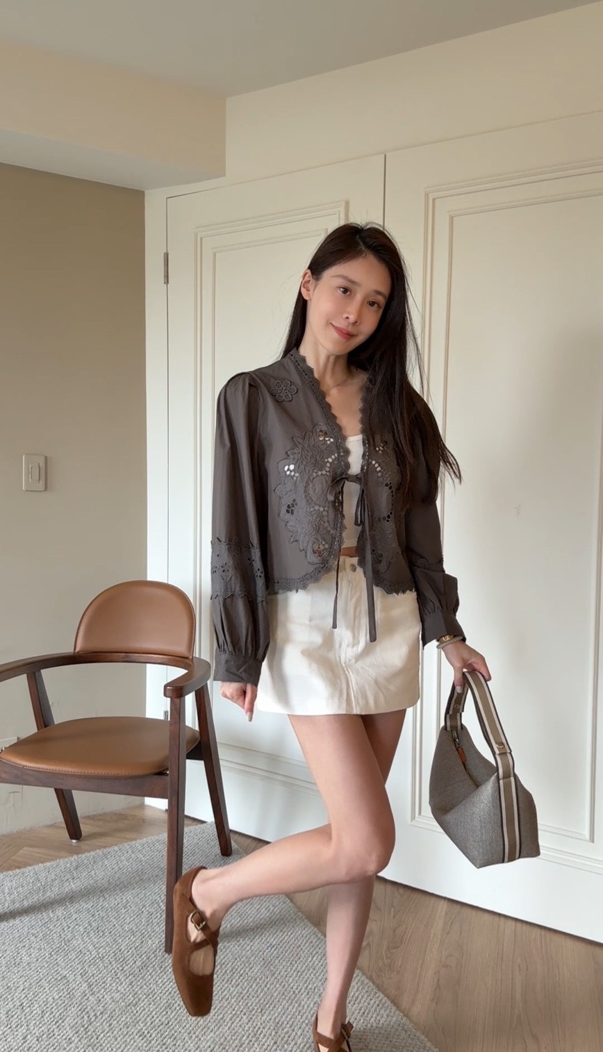 融合優雅與浪漫氣息的緹花造型綁帶外套