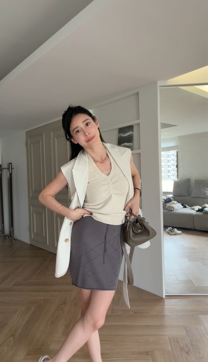 柔軟針織材質帶有彈性,貼合身形但不緊繃