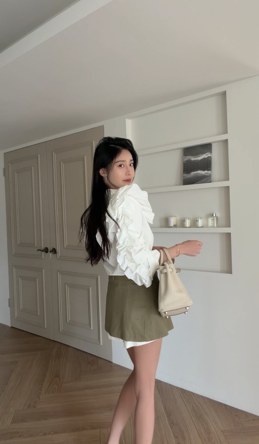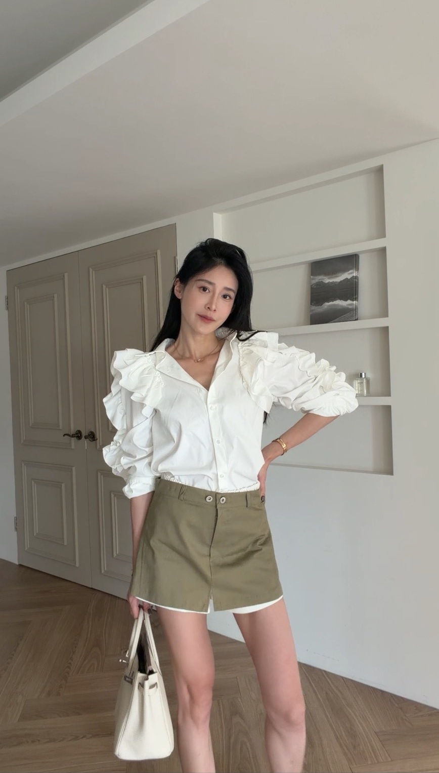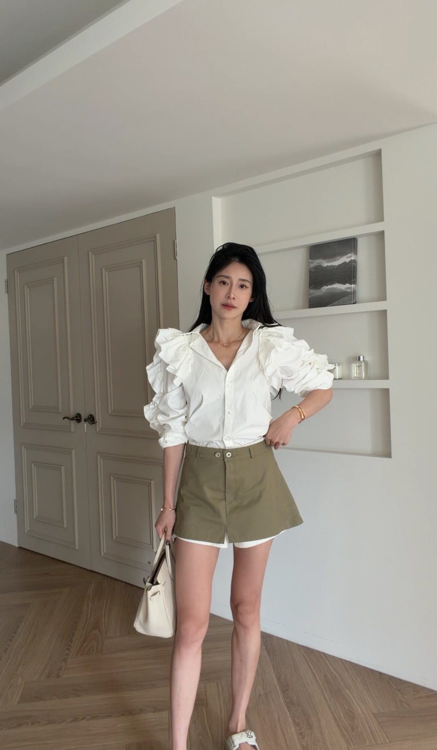外層為軍綠色短裙剪裁,俐落有型