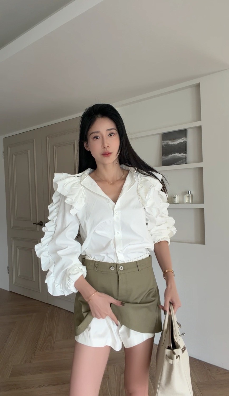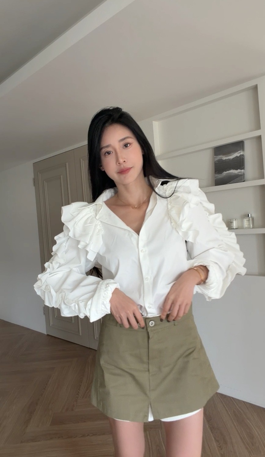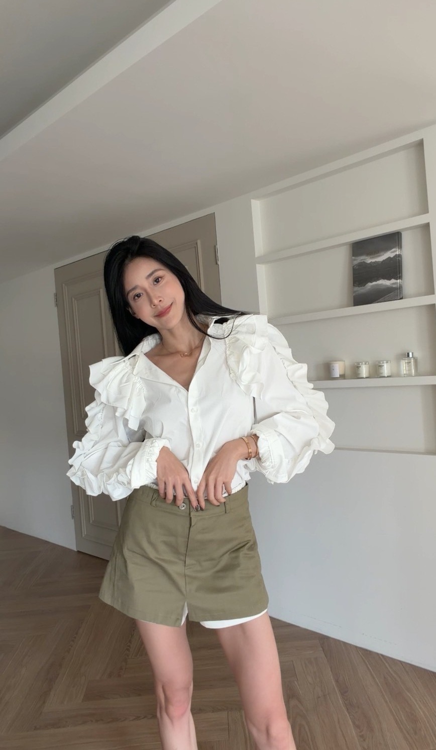 外層為軍綠色短裙剪裁,俐落有型