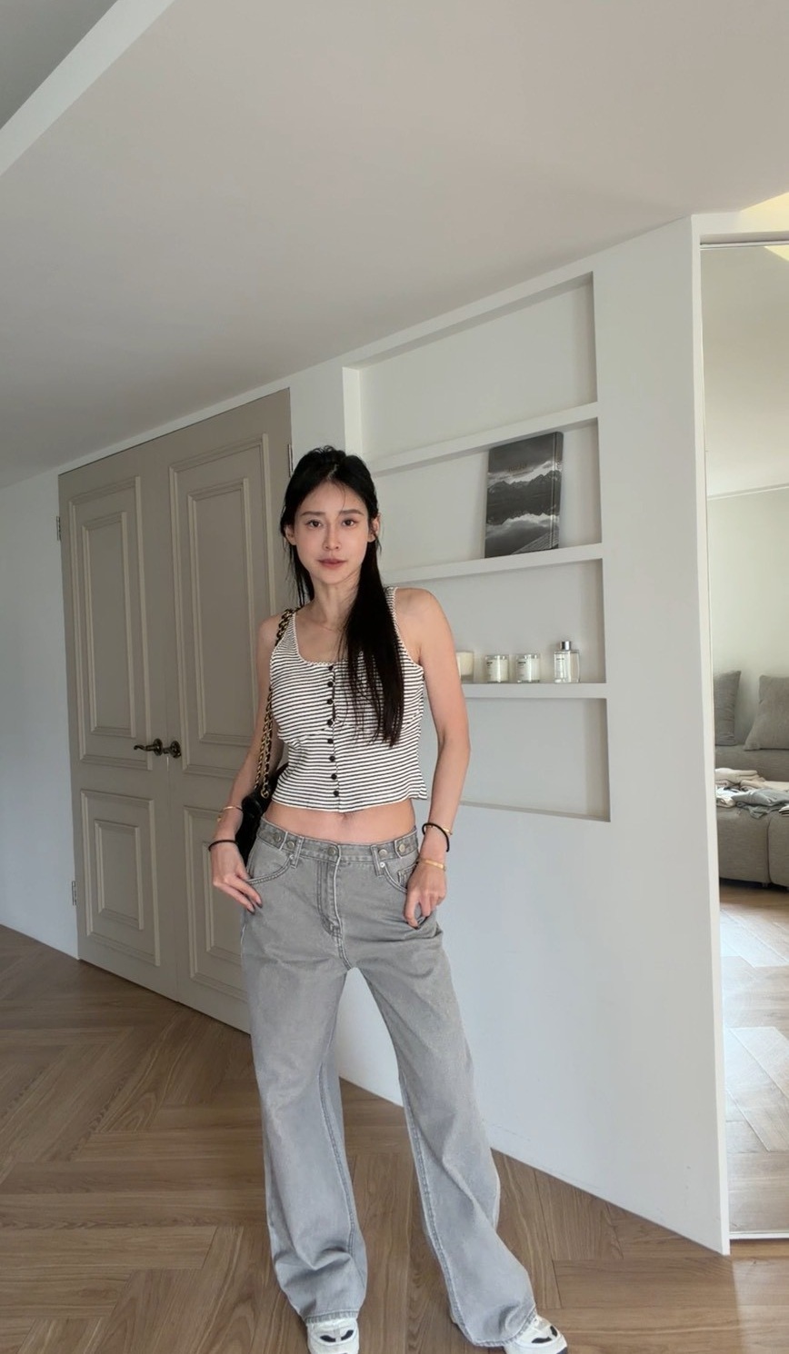 版型採用微寬直筒剪裁,修飾腿型同時保留空間感