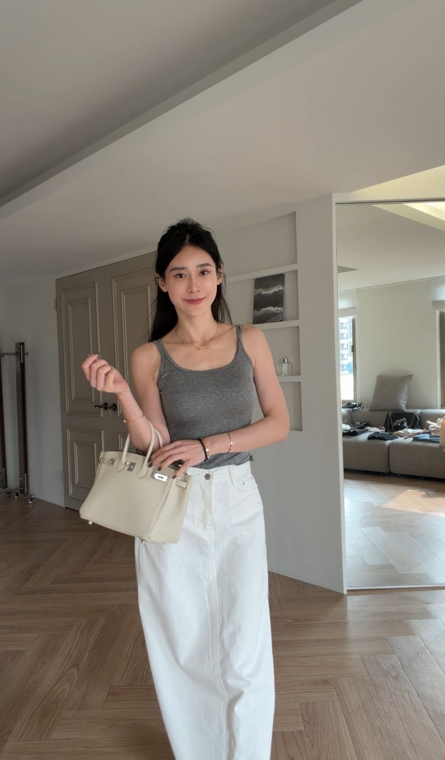 簡約乾淨的白色牛仔長裙