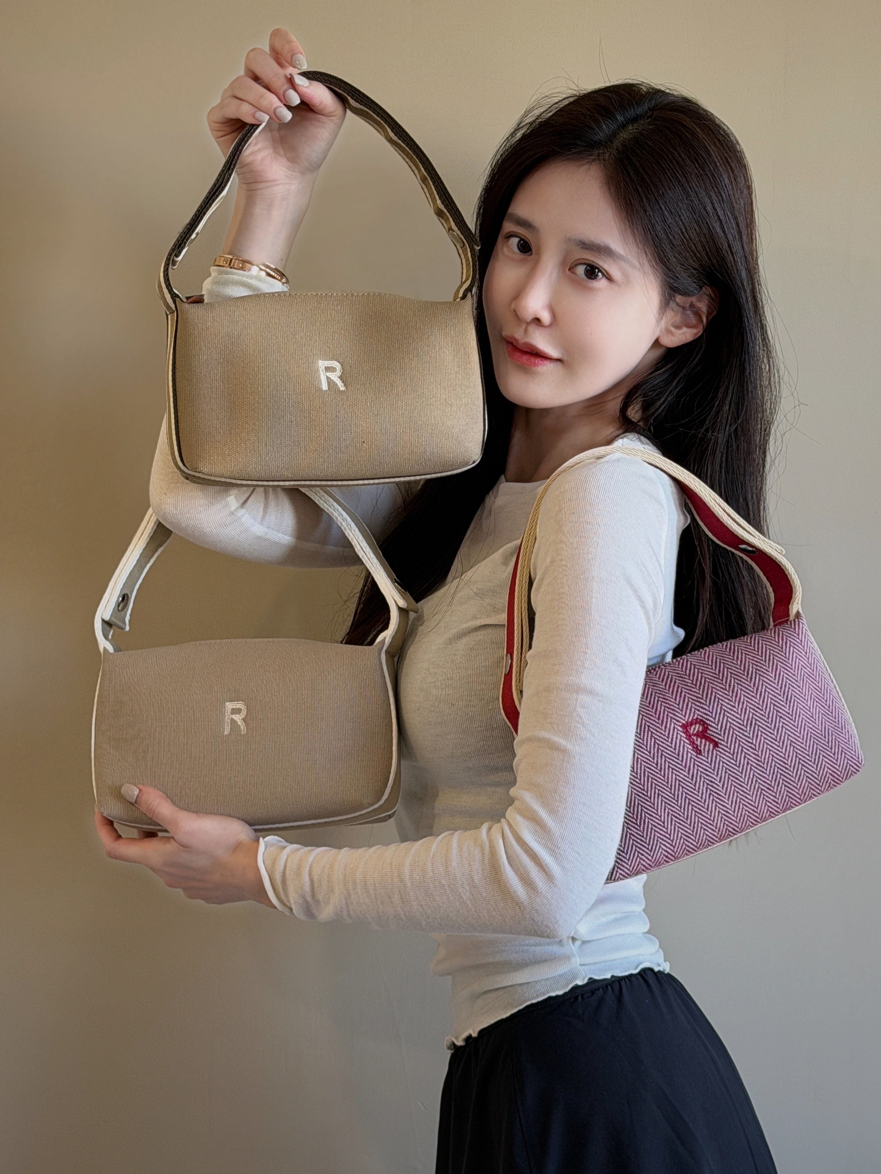 Ranie 自訂款隨身肩窩包以柔韌布料搭配立體弧形肩帶