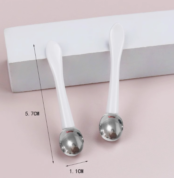 眼部按摩棒+304不鏽鋼挖勺+圓頭面膜刷+不鏽鋼托盤